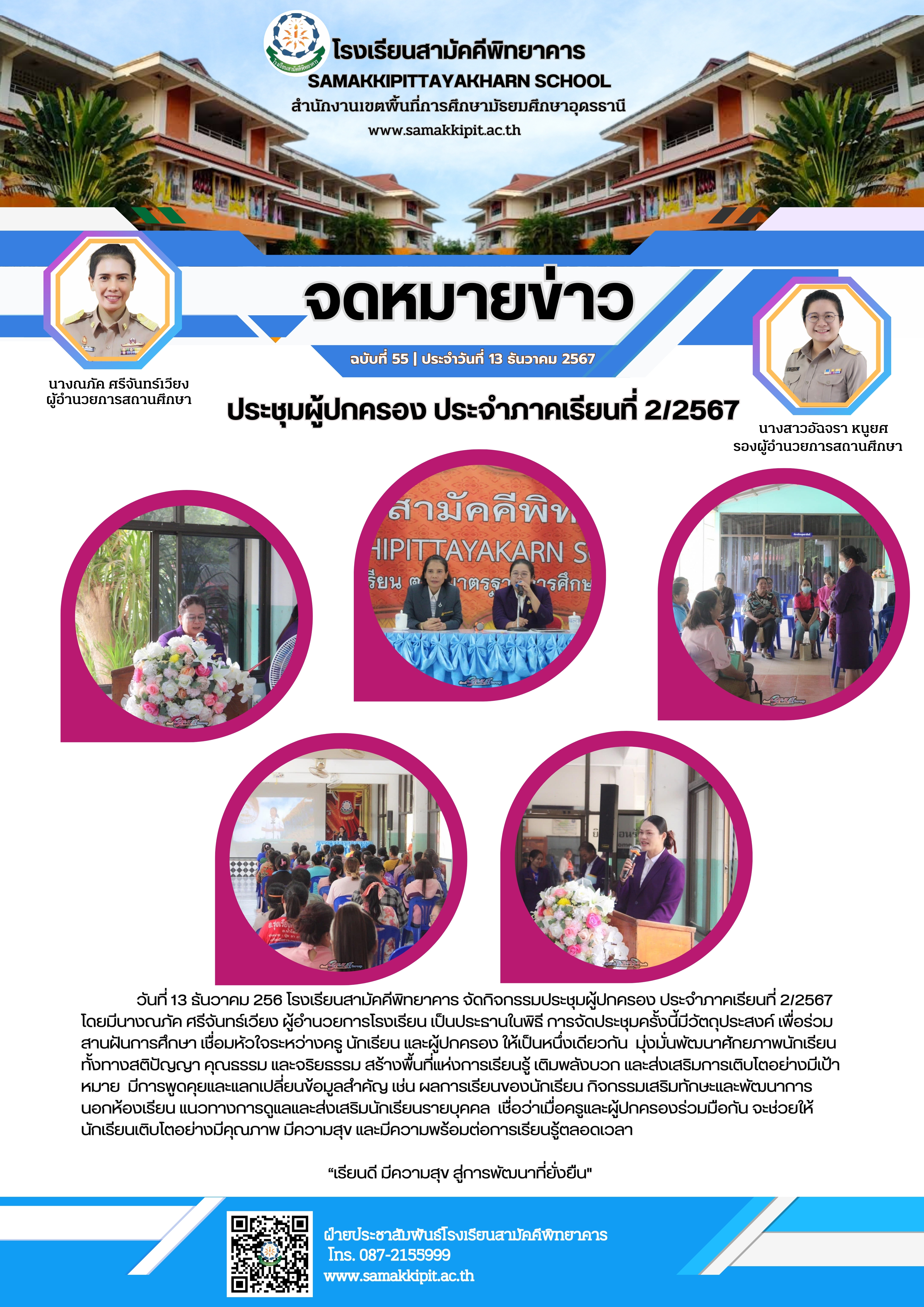 วันที่ 13 ธันวาคม 256 โรงเรียนสามัคคีพิทยาคาร จัดกิจกรรมประชุมผู้ปกครอง ประจำภาคเรียนที่ 2/2567 โดยมีนางณภัค ศรีจันทร์เวียง ผู้อำนวยการโรงเรียน เป็นประธานในพิธี การจัดประชุมครั้งนี้มีวัตถุประสงค์ เพื่