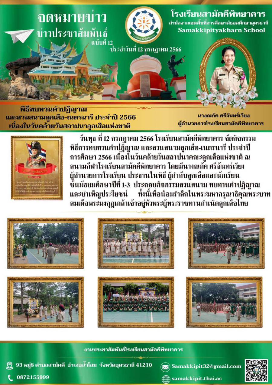 โรงเรียนสามัคคีพิทยาคาร ดำเนินกิจกรรม ทบทวนคำปฏิญาณและสวนสนามลูกเสือ-เนตรนารี ประจำปี 2566
