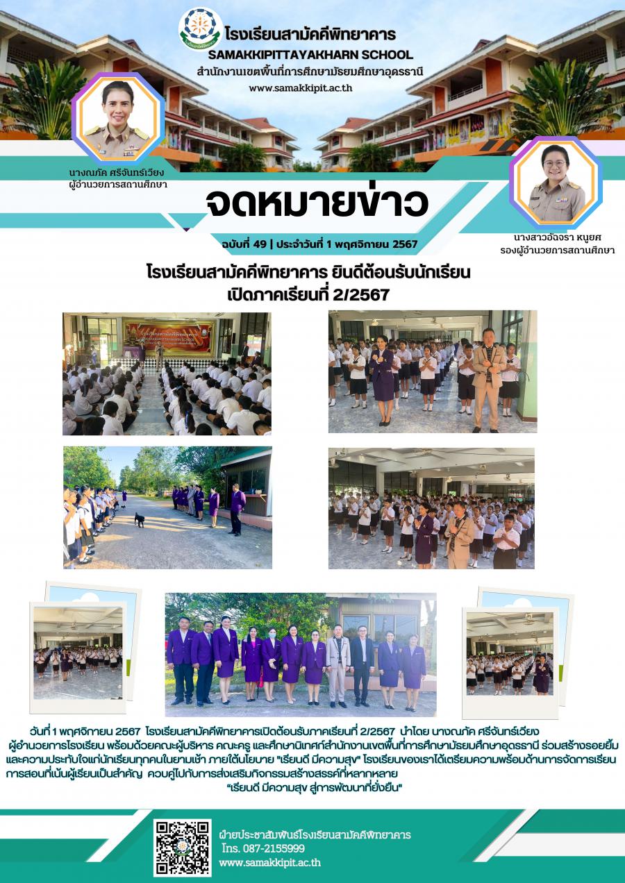 โรงเรียนสามัคคีพิทยาคารเปิดต้อนรับภาคเรียนที่ 2/2567